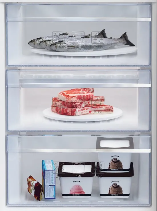 Beko RCSA366K40XBN. Totale nettocapaciteit: 343 l. Deurscharnieren: Rechts. Klimaatklasse: SN-ST, Geluidsniveau: 38 dB. Nettocapaciteit koelkast: 223 l, Aantal planken koelkast: 4, Aantal groente lades: 1. Nettocapaciteit vriezer: 120 l, Vriescapaciteit: 5,5 kg/24u. Energie-efficiëntieklasse: E, Jaarlijks energieverbruik: 243 kWu. Kleur van het product: Grijs Grijs Ingebouwd 343 l 223 l 120 l Onder 5,5 kg/24u E 243 kWu C 38 dB