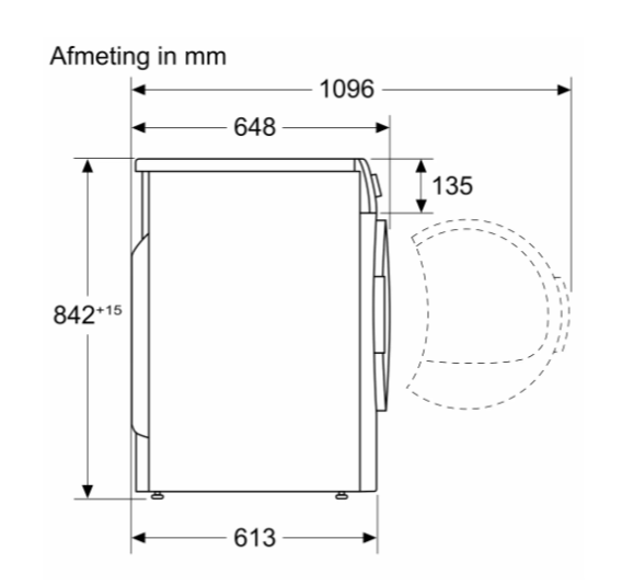 Afmetingen van het toestel (h x b x d): 84.2 x 59.8 x 61.3 cm.