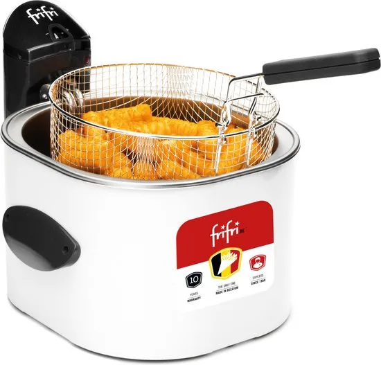 De frifri 1528 is een XL koude zone friteuse met een extra groot gepatenteerd 3200 Watt High speed verwarmingselement voor een sneller, krokanter en gezonder resultaat. In de grote ronde mand past wel 1,5 kg friet, genoeg voor een groot gezin. Het verwarmingselement wordt ondersteund aan de onderzijde, kan dus niet doorzakken en dus altijd een optimale afstand tussen onderkant kuip en verwarmingselement, dit is zeer belangrijk voor het koude zone principe Duurzame metalen behuizing in de kleur wit XL ronde mand voor 1,5 KG frites, 5 a 6 personen Hoogwaardige kunststof stofdeksel, zeer eenvoudig schoon te makenBedieningsknop aan de achterkant voor een gemakkelijker onderhoud en de temperatuur aanduiding blijft hierdoor altijd zichtbaar, vervaagt nooit Kuip in professioneel horeca RVS die corrosie en aantasting van de voedingswaren tegengaat. Hierdoor hecht er minder vuil aan de kuip Geproduceerd in het beste Inox 304 roestvrij staal. Dit materiaal wordt gebruikt in professionele horeca producten, hierdoor eenvoudiger en sneller te reinigen. Inox 304 is gladder, duurzamer en veel gezonder. Inox 304 laat geen materiaalresten achter in frituurvet Volledig en gemakkelijk uitneembaar in minder dan 5 seconden Slimme opberging van het elektriciteitssnoer Ergonomische handvattenFriteuse kan in de vaatwasser m.u.v. het verwarmingselement Handvat van het mandje met een vaste stand, waardoor deze niet in contact komt met de olie,zelfs niet wanneer deze is ingeklapt. De friteuse kan dus stofdicht worden opgeborgen Eenvoudig op te bergen door compacte vorm en afmetingen Dubbele veiligheid tegen oververhittingRegelbare thermostaat met grote cijfers voor een perfect bakresultaat Garantie 10 jaar Over Frifri Sinds 1958, zorgt het Belgische merk Frifri voor een revolutie in het huishoudelijk elektro. Het resultaat van deze constante innovatie? Handige en design toestellen, die in alle veiligheid worden gebruikt. En bovenal, uren plezier in de keuken of aan tafel. Kostbare momenten, grondleggers van wondermooie herinneringen.