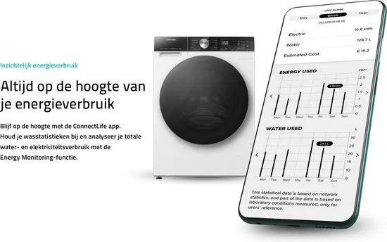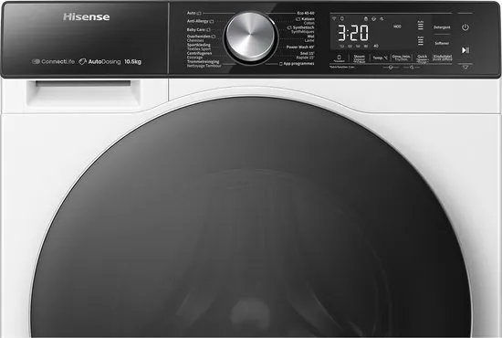 Hisense 5S Serie WF5S1045BW – Wasmachine met Energielabel A – 10,5kg – Auto dosing – 72dB (A) – Steam Wash -1400 toeren – Power Wash 49′ – Connectlife