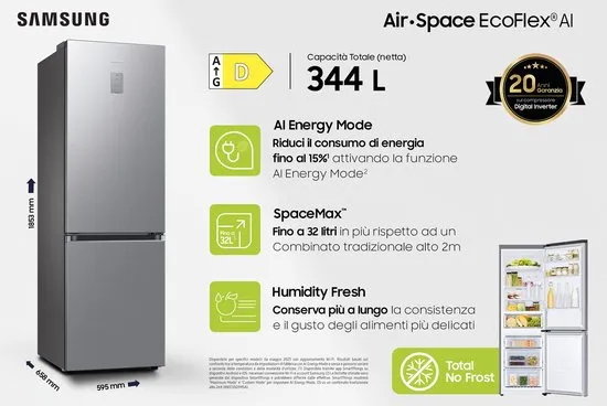 De Samsung RB34C671DS9 combineert een strak design met slimme technologieën om uw voedsel langer vers te houden. Met een royale totale nettocapaciteit van 344 liter en No Frost technologie in zowel de koelkast als de vriezer, behoort ijsvorming tot het verleden. Profiteer van optimaal gebruiksgemak en een lange levensduur van uw verse producten. Bestel nu en profiteer van gratis verzending!Belangrijkste Kenmerken