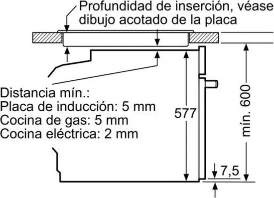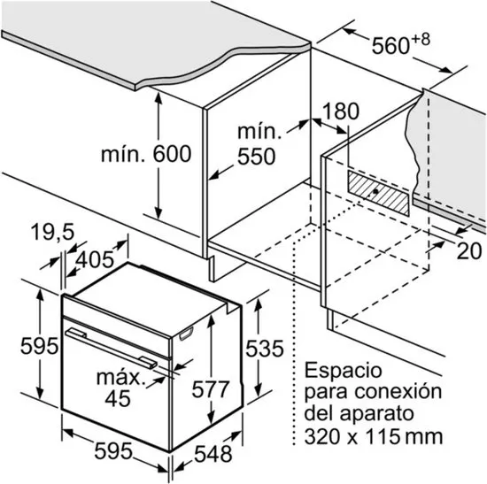 • Inbouwafmetingen (h x b x d): 585 mm - 595 mm x 560 mm - 568 mm x 550 mm