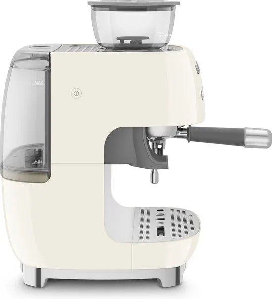 De SMEG Espressomachine met geïntegreerde bonenmaler EGF03 maakt heerlijke koffie van versgemalen bonen! Het apparaat zorgt voor een barista ervaring, door de mogelijkheden in de instellingen, met het gemak van een automatische machine. Voor een gelijkmatige maling waarbij alle aroma's behouden blijven, is de geïntegreerde bonenmaler uitgerust met roestvrijstalen conische molens waarmee je de maling superfijn kunt instellen. De mogelijkheid om de bovenste molen te verwijderen zorgt voor een gemakkelijke en grondige reiniging.
