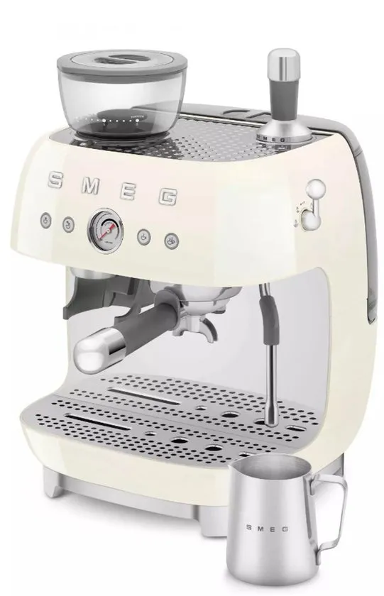 Deze SMEG espressomachine EGF03 wordt standaard geleverd met: 1-Kops filter 2-Kops filter Koffie tamper Melkkan Beschikbare kleuren: Zwart EGF03BLEU Crème EGF03CREU Rood EGF03RDEU Wit EGF03WHEU Pastelblauw EGF03PBEU Watergroen EGF03PGEU Design made in Italy SMEG ontwikkelt o.a. design keukenapparatuur die is ontstaan uit de samenwerking met architecten van internationale faam. Het is de perfecte expressie van “Made in Italy”, die stijl en kwaliteit samenbrengt in producten die ontwikkeld worden met aandacht voor het kleinste detail. SMEG is design & technologie.