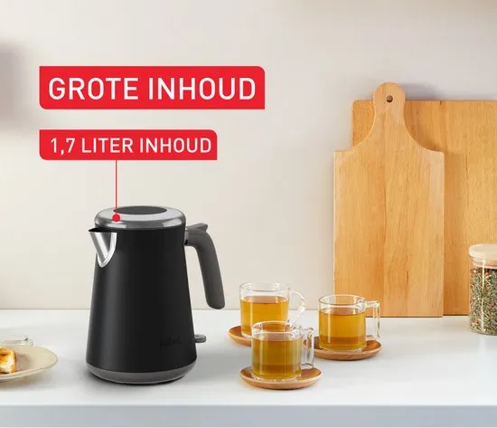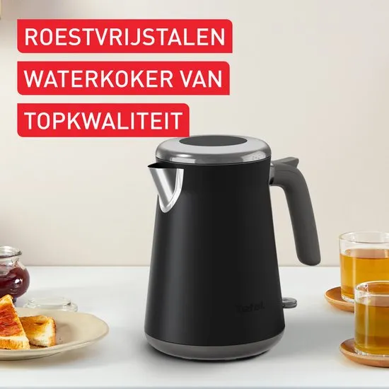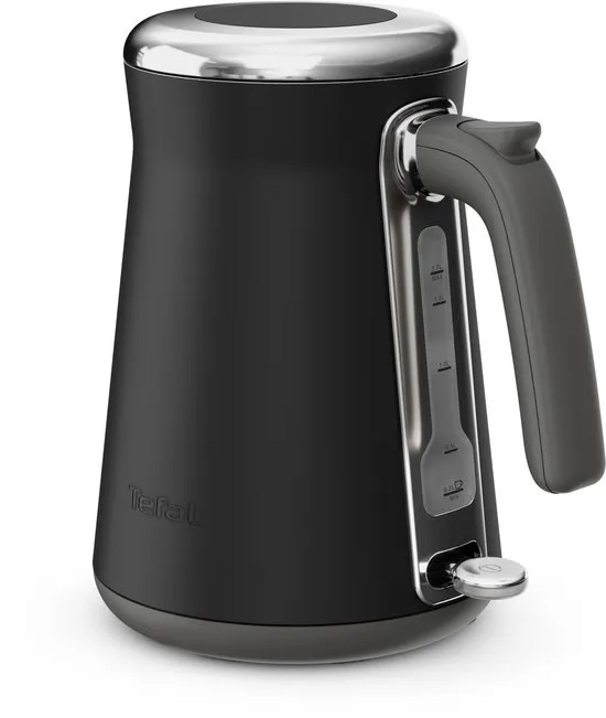 Eenvoudig te gebruiken waterkoker met een chique uitstraling. Breng een vleugje chique retrostijl naar je keuken met deze verfijnde roestvrijstalen Tefal Collection KI6668 - Waterkoker, die elegantie moeiteloos combineert met gebruiksgemak! Profiteer van een scala aan handige functies, zoals een ergonomisch deksel dat wijd opent voor eenvoudig vullen en schoonmaken, en een praktische éénkopsindicator waarmee je precies één kopje van je favoriete warme drank kunt bereiden. Een royale inhoud en een handige automatische uitschakelfunctie maken het geheel compleet. Productvoordelen van de Tefal Collection KI6668 - Waterkoker: Roestvrijstalen design: Deze premium roestvrijstalen waterkoker heeft een elegant design met chromen afwerking en ergonomisch deksel. Makkelijk In Gebruik: Het deksel opent eenvoudig met een druk op de knop, waardoor een brede opening ontstaat die het vullen en schoonmaken van de waterkoker bijzonder gemakkelijk maakt. Makkelijk af te lezen Waterniveau: Bereid in een oogwenk de exacte hoeveelheid water om tijd te besparen of gebruik de éénkopsindicator om één kopje te maken. Automatische Uitschakeling Met Indicatielampje: Je waterkoker schakelt automatisch uit als het water het kookpunt bereikt of als er geen water meer in zit, voor totale veiligheid en gemoedsrust. Ruime Inhoud: Bereid tot wel 7 kopjes dankzij de royale inhoud van 1,7 liter, perfect voor je familie en vrienden. Schenken Zonder Morsen: Met de nauwkeurige schenkmond van de waterkoker schenk je elk kopje zonder morsen in! Snel Koken: Het vermogen van 2400 W zorgt ervoor dat je waterkoker snel opwarmt, zodat je in een handomdraai van hete dranken kunt genieten. Ideaal voor drukke ochtenden! Wasbaar Filter: Het antikalkfilter is gemakkelijk te verwijderen en schoon te maken, voor schoner water en smakende thee en koffie Repareerbare producten - 15 jaar Ontworpen om gemakkelijk te repareren Snelle en goedkope levering van onderdelen gedurende 15 jaar 6200 reparatiecentra wereldwijd Productkenmerken van de Krups Collection KI6668 - Waterkoker 1,7 l Zwart 2400 W Instelbare thermostaat Waterniveau-indicator Anti-kalkfilter Verborgen verwarmingselement Automatisch uitschakelen Draadloos Snoeropslag Materiaal behuizing: Roestvrijstaal